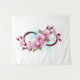Símbolo de infinidade com flores e folhas de sakura florescendo floresce sobre fundo leve, pintado com tinta azul. O símbolo do infinito. Sakura floresce. Tatuagem. Hanami