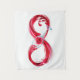 Símbolo infinito do fluxo contínuo de vinho tinto que entra em vidro de vidro sobre fundo branco.
