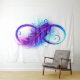 Símbolo do infinito com uma bela pena pintada em cores vibrantes roxo e azul sobre um fundo branco.