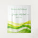 Printed on a lightweight fabric tapestry, this welcome sign offers a fresh, trend-forward alternative to traditional printed signage. The soft texture adds movement and visual depth while remaining easy to hang, transport, and reuse long after your wedding day. Its vibrant green palette creates an inviting, energetic atmosphere that feels perfect for tropical, summer, beach, coastal, destination, and modern weddings.