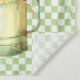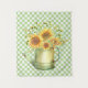 O bonito design de campo/fazenda apresenta uma ilustração aquosa de uma rega de jardim que pode ser preenchida com um buquê de girassóis sobre fundo verde e prato branco de hortelã
