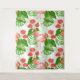 Design de padrão aquoso com flores e aves flamingos, monstera e palmeiras.