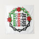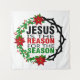 Jesus é a razão da temporada, esta design apresenta uma coroa de espinhos e uma coroa de natal com texto dizendo "Jesus é a razão da estação".