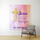 A moderna aquarela JESUS RANSOMOU A tapeçaria da canvas cristã dos EUA, proclamando a mensagem cristã de vitória do Cristo na Cruz. A design mostra uma grande cruz amarela de ouro, e o texto que lê JESUS me ROUBOU DE SIN & GRAVE HALLELUJAH! Há uma coroa dourada sobre o J de Jesus. O texto aparece na tipografia roxa contra uma lavagem a aquarela de lilás, rosa, pêssego e amarelo. Todo o texto - EXCETO 'JESUS' - é PERSONALIZÁVEL, então você tem a opção de ter apenas JESUS, ou você pode mudar 'ressonado' para 'salvo' ou 'salvo'; ou você pode mudar 'pecado & grave' para um vício, ou 'Aleluia' para 'Elogá-lo'. Na parte inferior, você tem um nome de espaço reservado PERSONALIZÁVEL OPCIONAL, que você pode alterar para seu nome de igreja ou família, ou simplesmente excluir. A escolha é sua! Este pano de fundo da igreja faria um muro ideal pendurado para a sua casa, igreja ou organização baseada na fé. Outros versos populares de Escrituras estão disponíveis. Por favor, entre em contato comigo se você quiser que o logotipo da sua igreja ou empresa seja adicionado. Escolha entre uma grande seleção de designs cristãos em cartas, decoração doméstica, roupas e presentes projetados por Designs bereanos.
