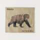 Possui uma pintura digital de um Urso Kodiak em um pergaminho neutro, ou papel antigo, fundo. A leitura de texto "Alaska" também é exibida. O Urso Kodiak (Ursus arctos middendorffi), uma subespécie do urso pardo, ou grizzly, são os maiores ursos do mundo. Um macho adulto pode ter mais de 10 pés de altura quando ereto sobre as pernas traseiras e pesar mais de 1500 libras - uma visão verdadeiramente segura. Um urso no Bismarck, o zoo de Dakota do Norte, estimava-se ter pesado até 2400 libras. Os ursos vivem nas ilhas do Arquipélago Kodiak do Alasca. Atualmente, há cerca de 3500 ursos Kodiak e o seu número está a aumentar devido ao estado geralmente excelente do seu habitat, incluindo peixes suficientes para comer. Eles são chamados de takuka-aq, em Alutiiq, a língua das pessoas nativas daquela área. Acredita-se que os ursos tenham sido isolados lá desde o final da última Era do Gelo há mais de 12.000 anos. Embora sejam o maior carnívoro terrestre, a sua dieta inclui grandes quantidades de erva, outras plantas e bagas. Atualmente, há cerca de 3500 ursos Kodiak e o seu número está a aumentar devido ao estado geralmente excelente do seu habitat, incluindo peixe suficiente para comer. Devido à abundância de recursos comidas, os ursos Kodiak têm intervalos mais pequenos do que quaisquer outros ursos pardos e não têm necessidade de defender territórios. As pessoas Alutiiq caçavam ursos para comidas, roupas e ferramentas. Setas, lanças e excelente de coragem eram necessárias para caçar equipamento. As cabeças de ursos costumavam ser deixadas no campo como sinal de respeito ao espírito dos ursos.