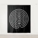 Tapeçaria com um labirinto branco sobre fundo preto. Personalizável.