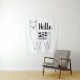 Esboço preto e branco moderno do lama com a palavra "olá!" tapeçaria da parede.