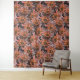 Tapete De Parede Laranja-aquarela e flores marrons.