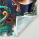 Esta tapeçaria tem um design steampunk.
