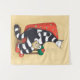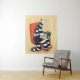 Ttapeçaria de amante de livros com uma ilustração divertida de uma estranha criatura de gato listrado, preto e branco, com pescoço longo em casa. Este estranho personagem fica em casa, sentado pacificamente numa cadeira laranja com olhos, relaxando e lendo um livro enigmático. Ela gosta de uma xícara de café quente em suas pantufas decoradas com olhos.