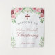 Tapeçaria de boas-vindas para batizado / batismo de primavera ou verão, elegante e sofisticada, com uma cruz, rosas peônia pintadas à mão em rosa e vermelho burgundy, folhas e folhagens verdes, e com uma caligrafia editável de estilo chic e moderno. O letreiro é adequado para eventos religiosos de meninas ou meninos - batizado, batismo, primeira comunhão, dedicação.