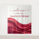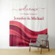 Crie uma primeira impressão ousada e inesquecível com esta Tapeçaria de Boas-Vindas Burgundy, projetada para receber os convidados com uma cor rica e sofisticação moderna. Com ondas abstratas fluidas em burgundy profundo e impactante, este design reflete a estética de casamento inspirada em cortinas da tendência de 2026. O movimento em camadas cria profundidade e dimensão, dando à obra de arte um toque luxuoso e inspirado em tecidos, que é ao mesmo tempo elevado e contemporâneo.