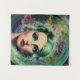 Veja este belo retrato elegante de uma mulher espacial com o universo como pano de fundo e um lindo halo verde em volta de sua cabeça adornada com flores lavandas com um olhar de lavagem com aquarela retrô. Faz um presente perfeito!