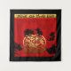 Em um quadrado estão 5 ratos pretos, dois empoleirados em uma forma dourada dentro da qual está o sexto rato com ideograma. Atrás da cena há um fundo vermelho no qual letras decorativas e ornamentadas formam as palavras: ANO DO RATO. Desenho em tapeçaria de parede quadrada. Perfeito para o Ano Novo Chinês do Rato ou aniversário (pessoas nascidas no Ano do Rato). ----- "O Rato (子) é um dos animais do ciclo de 12 anos que aparecem no zodíaco chinês relacionado ao calendário chinês. O Ano do Rato está associado ao símbolo do Ramo Terrestre 子. O Ano do Rato é um ano bissexto. As pessoas nascidas dentro desses intervalos de datas podem ser consideradas como tendo nascido no "Ano do Rato", ao mesmo tempo em que carregam o seguinte signo elementar: