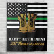 Adicione o toque final à festa de aposentadoria militar com estes banners e suprimentos de festa com o design da linha verde fina. Bandeira americana em cores militares. Esta faixa de festa da linha verde fina é perfeita para uma festa de aposentadoria militar, despedida de implantação militar, celebração de boas-vindas em casa, formatura militar e festa de despedida de soldados. Perfeita para todos os militares, exército, proteção de fronteira, patrulha de fronteira, oficial de conservação, guarda-parque, guarda de caça, agências federais de aplicação da lei. Personalize este convite da bandeira americana com o nome do seu soldado e mensagem pessoal. Veja nossa coleção de presentes de aposentadoria militar, presentes de formatura militar, lembrancinhas e suprimentos. DIREITOS AUTORAIS © 2021 Judy Burrows, Black Dog Art - Todos os Direitos Reservados. Tapeçaria Personalizada de Aposentadoria Militar da Linha