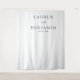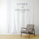 Este elegante pano de fundo para casamento apresenta um design minimalista com um fundo branco limpo e linhas verticais sutis à esquerda, adicionando textura sem sobrecarregar a simplicidade. O texto central está organizado em uma fonte serifada sofisticada, criando uma atmosfera formal e convidativa, perfeita para casamentos ou celebrações significativas. Com sua paleta de cores azul-marinho escuro, este design oferece uma aparência atemporal e profissional, ideal para capturar momentos memoráveis. O clima geral é de elegância discreta, tornando-o uma escolha versátil para qualquer evento formal.