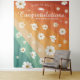 Cortina de cerimônia de formatura ou festa extra grande para as fotos de todos os formandos! O design apresenta um moderno design de caligrafia "Parabéns" em branco sobre um fundo de listras de arco-íris retrô com flores de margarida em aquarela. Personalize o texto personalizado com o ano da turma e o nome da escola. Use-o como pano de fundo para o photobooth de formatura! Nossa tapeçaria de formatura adiciona o toque perfeito à sua festa de formatura! Basta pendurá-la e pronto! Seja como pano de fundo para a mesa de sobremesas ou para tirar fotos, você certamente receberá muitos elogios. As tapeçarias de parede fazem ótimas peças de destaque tanto para decoração de casa quanto para eventos.