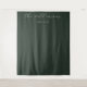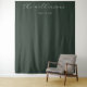 This elegant wedding backdrop features a minimalist design with a sophisticated dark green color palette, creating an understated yet refined atmosphere. The text is presented in a delicate cursive script, adding a touch of timeless charm and grace to the overall look. Perfect for a modern or classic wedding theme, this backdrop exudes a sense of elegance and simplicity, making it ideal for capturing memorable moments during your special day. Its clean lines and subtle sophistication ensure it will complement any decor style seamlessly.