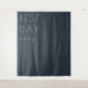 This elegant wedding backdrop features a minimalist design with the phrase "BEST DAY EVER" in a sophisticated, cursive typography. The dark navy background creates a chic and timeless look, perfect for capturing memorable moments on your special day. With its clean lines and understated elegance, this backdrop exudes romance and joy, making it an ideal choice to complement any wedding theme. Its simple yet stylish aesthetic ensures that it will beautifully frame your photos without overpowering them.
