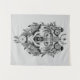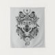 Características deste design um retrato de um lobo que veste penas tribais e um dreamcatcher.