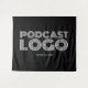 Adicione a sua imagem do logotipo da empresa de vlogger ou podcast branco retangular de estilo moderno para criar tapeçarias grandes do promocional. Personalize o estilo, o tamanho e a cor da fonte para atender às suas necessidades comerciais. Adicione mais texto conforme necessário para criar sua própria arte de parede de promocionais para o seu estúdio de podcast. Altere a cor preta do plano de fundo conforme necessário para corresponder às cores da decoração.