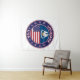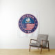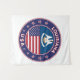 Crachá da Louisiana com bandeira da Louisiana e bandeira dos EUA com cores, forma arredondada. Emblema da Louisiana. Selo de Louisiana. Coleção dos Estados Unidos.