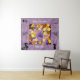 Um conjunto de flores multicoloridas em exibição atrás de uma lavanda e um quadro oval amarelo que diz 'Love Blooms..Forever. Dois pequenos pássaros pretos e brancos no centro com corações subindo. O texto é personalizável.