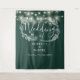 Este fundo de cabine de fotos de casamento floral com luzes de corda estiloso pode ser personalizado com seus nomes e data especial em um fundo verde esmeralda. Projetado por Thisisnotme©