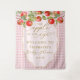 Maçã cor-de-rosa Gingham do nosso Fundo Fotobooth Chá de fraldas - Decor do Chá de fraldas do Tema do Pomar da Apple Tenha uma atividade divertida no seu chá de fraldas com este pano de fundo fotobooth personalizado do chá de fraldas. Apresentando um fundo de gingham cor-de-rosa suave, ramificações de maçã aquática e letras de guião caprichadas em uma borda ondulada inspirada na safra. Perfeito para um chá de fraldas de pomar de maçã caindo ou um doce borrado de maçã temido no outono.