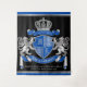 Create your very own aristocratic Coat of Arms, Emblem, Insignia or Family Crest with this beautiful, classic escutcheon or shield design. Cobalt Blue patterns decorate a shield topped with silver crown and flanked by medieval heraldic lion or griffin. A matching top banner holds your custom wedding date / birth date / slogan or battle cry. The shield has space for your monogram initials. Bottom banner carries your family name. There is also space below for your favorite quote, motto or message. Replace the sample text with your own for a personalized gift. A gender neutral design that will work for families, groups, couples or individuals. Makes a wonderful gift for Wedding, Anniversary, Birthday, Retirement, Promotion, Father’s Day, Bachelor Party, Wedding Shower, Graduation, International Heraldry Day, Medieval or Fantasy-themed parties and other special occasions.