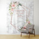 Moderno e trendy, este deslumbrante design de tapeçaria de casamento apresenta um falso cobre dourado-rosado geométrico adornado com rosas e flores cor-de-rosa cobreadas em aquarela, sobre uma textura de falso mármore branco. Os nomes do casal e alguns detalhes do casamento estão em uma cor de cobre correspondente. Direitos autorais Elegant Invites. Todos os direitos reservados.