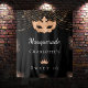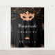 Para uma festa de aniversário de 16 anos, Sweet 16, glamorosa e feminina. Um fundo preto elegante. Decorado com pó de brilho dourado falso, uma máscara de mascarada e uma tiara. Personalize e adicione um nome. Pode ser usado como um banner de boas-vindas, decoração de parede de festa e como um fundo de cabine de fotos.