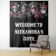 Um fabuloso muro de bola mascarada veneziana, pendurado, apresenta gráficos aquosos, vibrantes e atraentes, de homens e mulheres, vestindo máscaras opulentes e ornamentados em tons de ameixa escura, burgundy, cinzas e preto. Suas máscaras são adoradas com gravuras de filigrana de ornamentado, penas e flores florais. Cada máscara é única e tanto os homens como as mulheres têm pele branca de porcelana e lábios vermelhos rubis escuros. Personalize as grandes modelos de texto em negrito para se adequar ao seu carnaval de mascarada especial ou festa de aniversário de festival ou evento comercial.