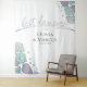 Conchas de lilás pálido e azul empoeirado adornam os cantos deste divertido fundo para o seu photobooth de casamento - (ou como um fundo coordenado para o seu livro de visitas ou mesa de casamento) - 'Melhor Dia de Todos!' escrito em caligrafia moderna manuscrita distressed com os nomes dos noivos e a data do casamento em texto de estilo contemporâneo moderno. Design criado para a BarefootBride™ por © WhimsicalArtwork™ - Esta é parte de uma Suite de Papelaria de Casamento completa com papelaria de casamento, chá de bebê e outros eventos correspondentes.