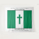 Tapeçaria da bandeira da NIGÉRIA como lembrança patriótica com Cruz e Versículo das Escrituras. O design mostra a bandeira da NIGÉRIA com uma cruz verde com sombra projetada no centro. Uma fina borda preta cerca a bandeira. Nos lados longos, há um nome e um versículo das Escrituras que são personalizáveis, podendo ser substituídos pelo nome da sua igreja ou organização, ou outro texto de sua escolha. Se você prender pesos nos cantos (não incluídos), a tapeçaria extra grande também pode ser usada como pano mortuário ou cobertura de caixão em um funeral, e mantida como lembrança posteriormente. Outras bandeiras e versões disponíveis.