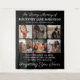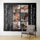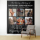 Elegante homenagem tapeçaria com 6 preciosos de seu ente querido perdido, o texto "em memória amorosa", seu nome, datas de nascimento/morte, e a lembrança dizendo "sua presença nós perdemos, sua memória que valorizamos, te amando sempre, esquecendo você nunca".