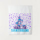 Memória Santorini. no resumo. Essa imagem mostra um desenho animado dos icônicos prédios lavados em branco de Santorini, Grécia. As casas são agrupadas e apresentam sotaques azuis, refletindo a arquitetura tradicional da ilha. O fundo está cheio de uma dispersão de estrelas roxas, criando uma atmosfera caprichosa e lúdica. A palavra "SANTORINI" está escrita em letras azuis e a negrito no fundo da imagem, sublinhando ainda mais o tema. Esta imagem é uma representação colorida e alegre do belo e popular destino turístico.