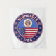 Crachá de Minnesota com bandeira de Minnesota e bandeira dos EUA cores, forma arredondada. Emblema de Minnesota. Selo de Minnesota. Coleção dos Estados Unidos.