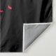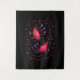 Tapeçaria estrangeira engraçada com uma ilustração bonito de caráteres vermelhos com os três olhos que voam com suas asas minúsculas e que sorriem feliz. Folhas do vermelho e do cinza que voam all over. Esta ilustração é meios mistos - o corpo dos aliens é feito de um desenho da aguarela das folhas abstratas e o resto é pintado digital.