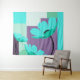 This modern floral tapestry features bold turquoise petals and clean organic shapes, bringing a fresh and calming atmosphere to any space.