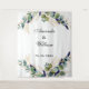 Para um casamento elegante. Fundo branco chique. Decorado com folhas de eucalipto coloridas à mão em verde, raminhos, folhagens e folhas de ouro falso. Personalize e adicione os nomes da noiva e do noivo e a data. Letras pretas e douradas. Pode ser usado como um banner de boas-vindas, como decoração de parede de festa ou como fundo de cabine de fotos.