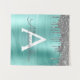 Tapeçaria de Monograma e Inicial em Metal Escovado com Brilho Teal Prata e Azul Aqua Falso Brilho Metálico. Isso torna o presente perfeito para aniversário de 16 anos, casamento, chá de noiva, aniversário de casamento, chá de bebê ou festa de despedida de solteira para alguém que ama luxo e estilos chiques.