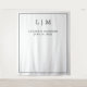 Painel de fundo para cabine de fotos de casamento simples, apresentando um design moderno e elegante com o seu monograma de duas letras, juntamente com seus nomes e data, rodeado por uma fina borda. Todo o texto é preto sobre um fundo branco e as cores do texto e do fundo podem ser alteradas para quaisquer cores que você desejar. Um design sofisticado e elegante, ótimo para um casal minimalista. Este painel personalizado é ótimo para tirar fotos com os convidados na recepção do seu casamento.