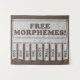 Esta é uma design engraçada para qualquer um que esteja ensinando ou aprendendo inglês através de fonics. O design tem uma imagem do estilo de aviso de pinboard que lê morfêmias livres. Uma morfina livre é uma palavra dividida em sua menor unidade significativa.