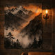 This dramatic mountain sunset tapestry features snow-capped peaks illuminated by golden hour light rays piercing through misty valleys. Created with flowing black and white ink wash painting techniques and warm orange accents, the artwork captures atmospheric fog layers, silhouetted pine trees, and the majestic beauty of wilderness at dusk. Perfect for nature lovers, cabin decor, rustic home aesthetic, adventure-themed rooms, or as a meaningful gift for hikers and outdoor enthusiasts. This premium quality tapestry (50" x 60") brings the warm spirit of mountain sunsets into any space, creating a breathtaking, inspirational, and contemplative atmosphere ideal for bedrooms, living rooms, offices, or meditation spaces.