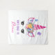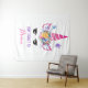Tapeçaria com uma citação inspiradora que diz: Não se esqueça do Sonho. Projetado com um unicórnio cor-de-rosa. Adorado com um fone floral de rico. Borboletas brancas voando por aí.