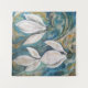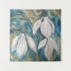 Os mensageiros de primavera, três flores de queda de neve em um fundo de esmeralda azul, com tons gelados metálicos.