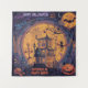 esta ilustração destaca os elementos assustadores mas alegres do Halloween, tais como morcegos, esqueletos, e casas assombradas cheias de riso.