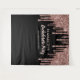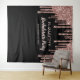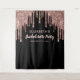 Tapeçaria de cabine de fotos personalizada chic e divertida para sua despedida de solteira, apresentando brilho dourado rosa cintilante caindo dos cantos contra um fundo preto e "Festa de Despedida de Solteira" em uma fonte dourada rosa clara. Você pode personalizar ainda mais com seu nome e data da festa.