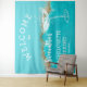faixa de boas-vindas personalizada para festa de noiva com uma tapeçaria de festa dourada e turquesa em azul turquesa brilhante e colorido dourado e pedra de geodo ou ágata de luxo, com um copo de cocktail é perfeito como um cenário de foto para a festa de noiva. Celebre o seu chá de panela com estilo com o tema perfeito para uma festa de cocktail em rosa ousado, o tema perfeito para a noiva vintage dos anos 70 luxuosa e suas damas de honra.